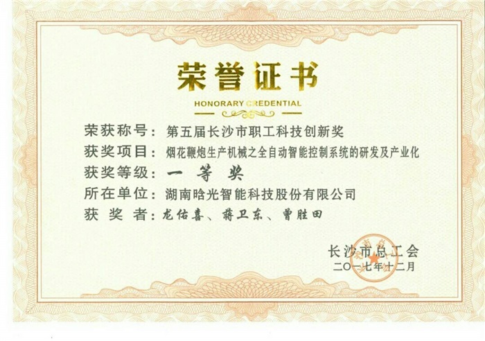 根據(jù)長沙市總工會長工發(fā)〔2017〕5 號文件《長沙市總工會關(guān) 于開展第五屆長沙市職工科技創(chuàng)新獎評選及展示活動的通知》的精神,經(jīng)基層工會推薦和專家評審,華智科技生物技術(shù)有限公司 鄭秀婷等人完成的《SNP 分子標記開發(fā)》等5 個項目榮獲一等獎。湖南湘電長沙水泵有限公司張鐵等人完成的《電動循環(huán)水泵》等 20 個項目榮獲二等獎,廣汽三菱汽車有限公司楊德亮等人完成的 《一種涂膠膠槍加熱裝置》等30 個榮獲三等獎。授予五個一等獎 的第一完成人鄭秀婷、黃愷、戴煜、楊先樂、龍佑喜五位同志“長沙市五一勞動獎章”榮譽稱號。